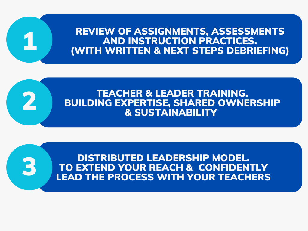 for the level of rigor and improve them as needed. The distributed leadership model is also described.