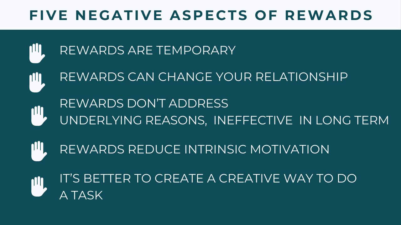 Parents often use rewards with their kids. Despite their popularity, are there problems with rewards? Actually, yes. There are five negative aspects of rewards.